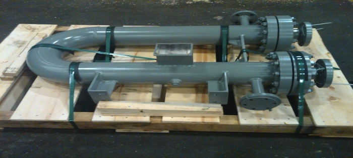 C600True counter-current flow, hairpin-type heat exchanger. |